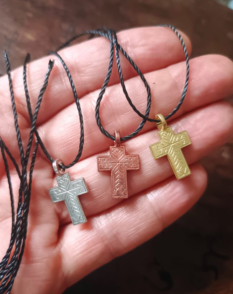 ENVIO GRATUITO A PARTIR DE 30€ DE COMPRA Estas pequeñas cruces pertenecen a la iglesia cristiana de Addis ababa, EtiopÃa. Disponibles en metal de 3 colores diferentes: Plateado, dorado y cobre. Incluye fino cordón de seda negra. El precio incluye una cruz con cordón. Indicad el color elegido en el apartado COMENTARIOS junto a los datos de envÃo.